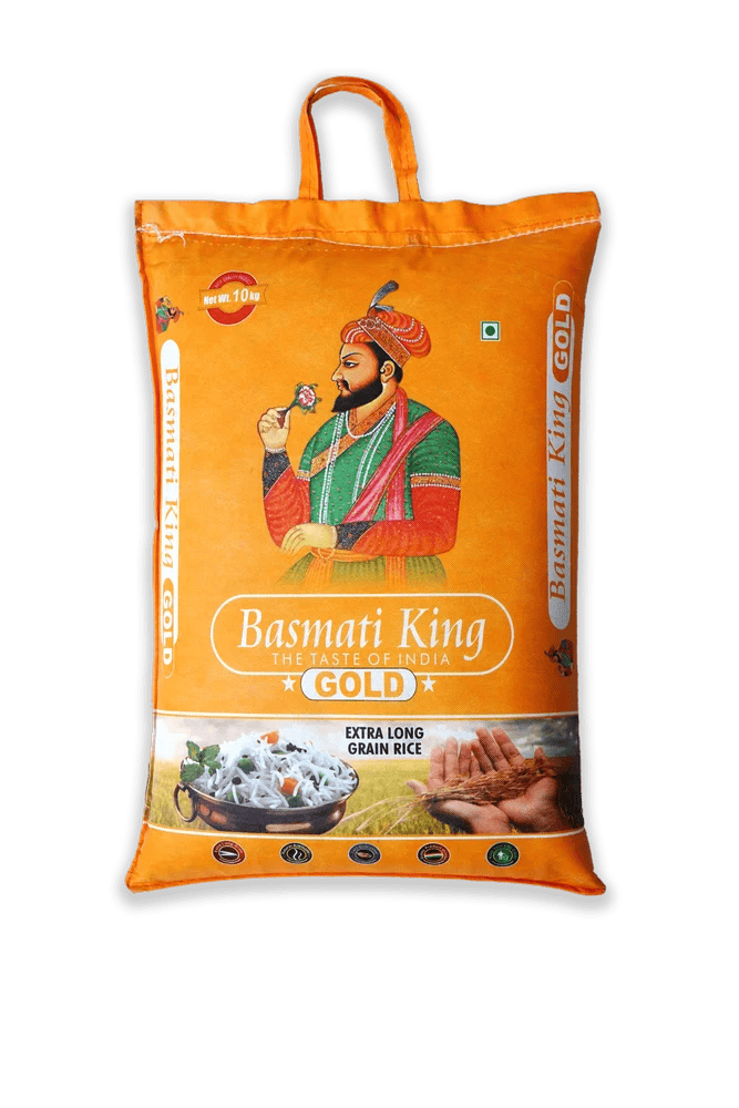 KING GOLD Basmati Rice 10kg provides superior quality for traditional and modern dishes. Its long, slender grains remain non-sticky, enhancing both presentation and flavor.