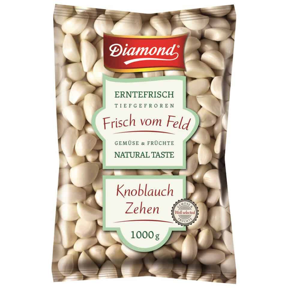 Knoblauchzehen 1kg provides fresh-frozen garlic cloves, peeled and ready to use. Retains authentic flavor and aroma, reducing prep time in kitchens.