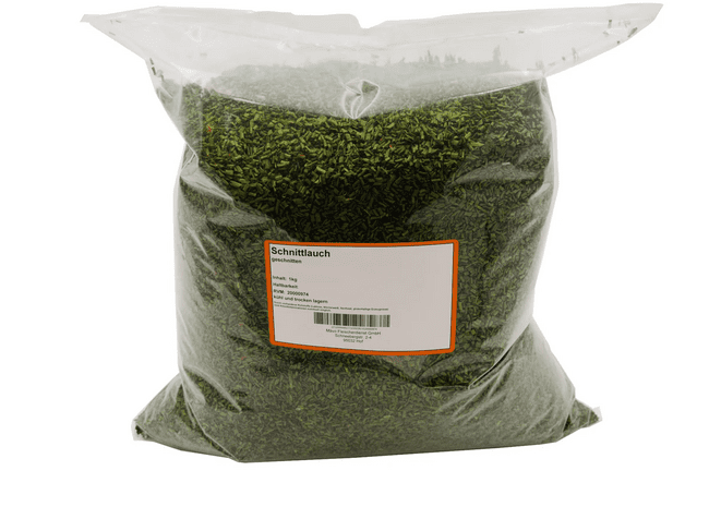 ENES Schnittlauch Flocken are gently dried chive flakes that preserve color and aroma. Ideal for garnishing soups, sauces, or salads. 500g pack suited for professional kitchens.