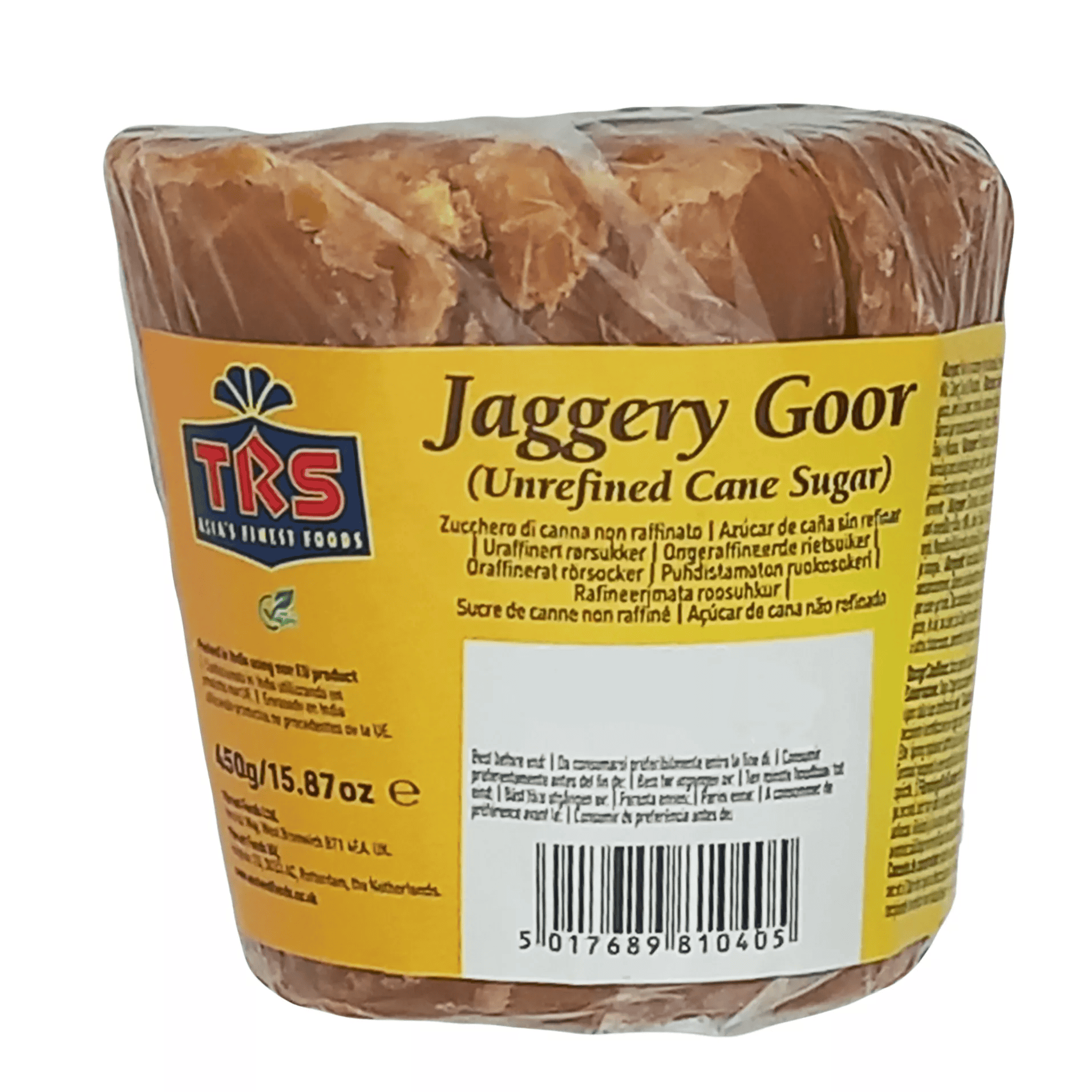 TRS Goor Indian Jaggery 450g is an unrefined natural sweetener made from concentrated cane juice. Packed with minerals, it?s a healthier alternative to sugar. It enhances the flavor of sweets, curries, and beverages with its caramel-like depth. Jaggery is also used in Ayurveda for its detoxifying and digestive benefits.
